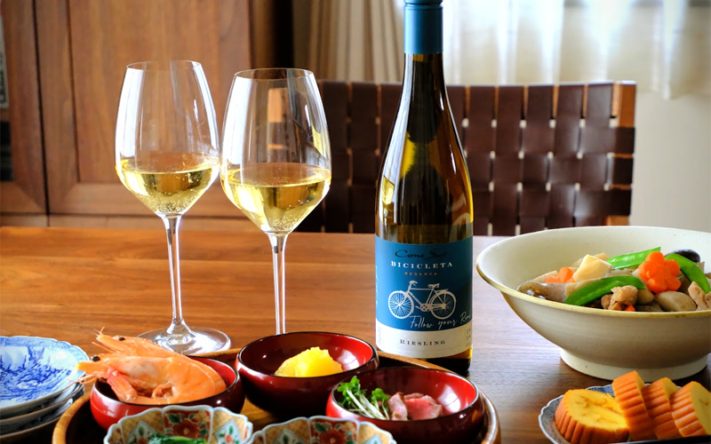グラスに顔を近づけると、ハチミツや檸檬、白い花のような甘やかさのある華やかな香り。爽やかな酸味と余韻に残る甘やかさが、ほんのり甘味を伴うおせち料理に寄り添い、色々なペアリングを気軽に楽しめる。